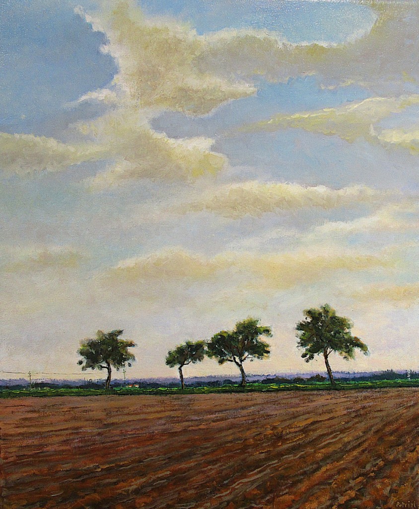 Champ labouré, effet du soir, huile sur toile 55/45 cm