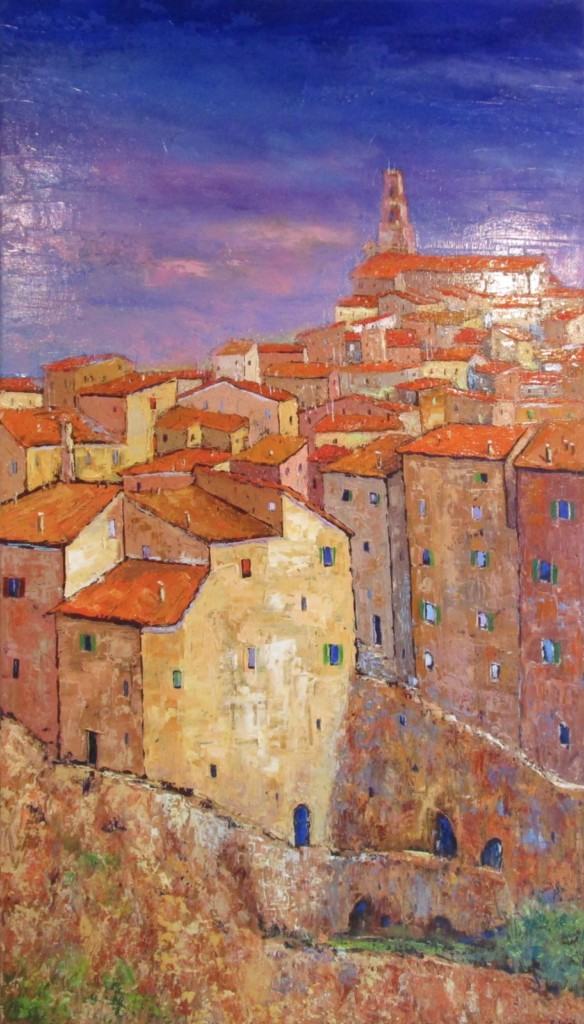 Le bourg, huile sur toile 70/40 cm